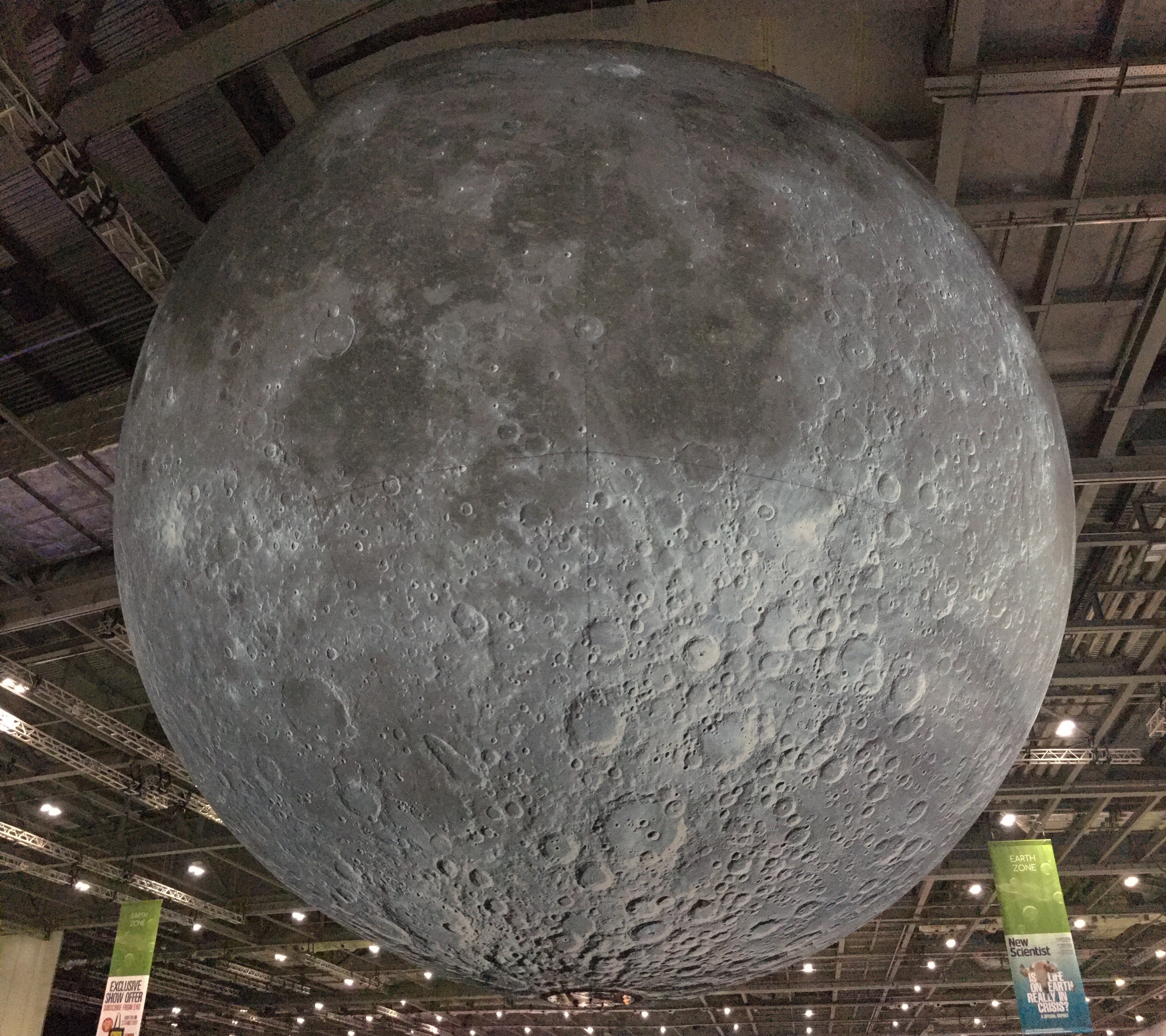In October, I volunteered at the BAA stand at the New Scientist Live in London. By chance, we had an excellent view of a large lunar globe in the Space Zone that provided a wonderful opportunity to observe the hitherto hidden surface.